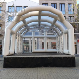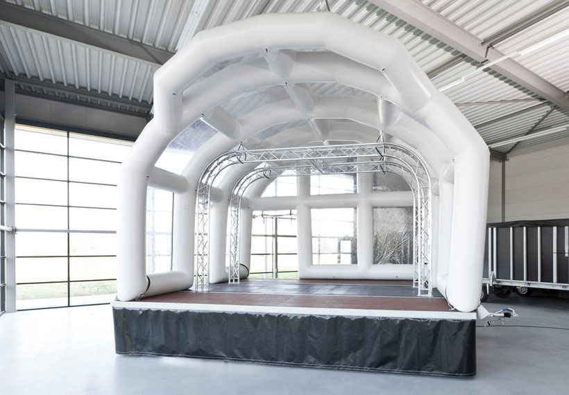 Onze INFLATABLE ARCH XL is een parel in ons assortiment. Snel en effectief! Het podium kan ook geleverd geworden inclusief licht en geluid.